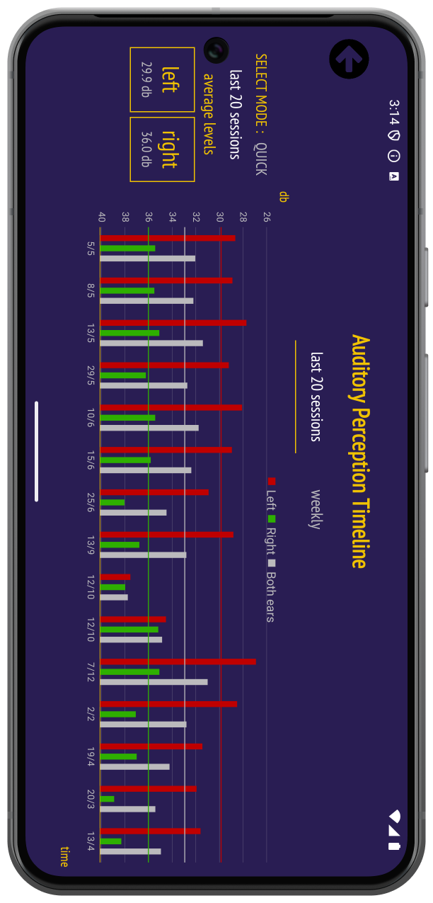 Using our built-in tonal analyzer, you can track your auditory fitness trends over time.
